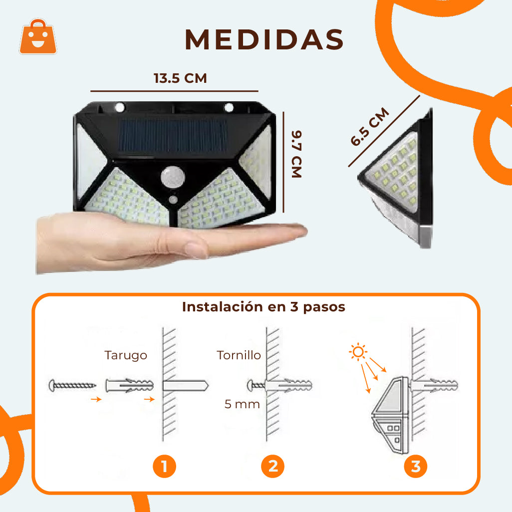 🔆 Gracias al panel solar ubicado en la parte superior y al sensor lumínico, se prendera y apagara de manera automática, además de cargarse durante el día, permitiéndole ahorrar mucho dinero.